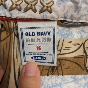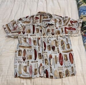Old Navy Fun surfboard and tiki button down top size 16. this is a kids size but could also fit a small adult. in great condition.