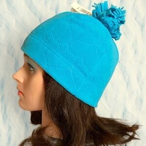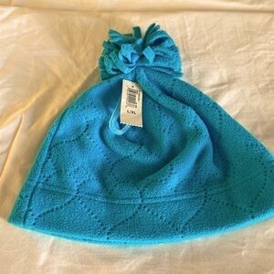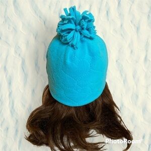 🦄 OLD Navy girls turquoise beanie with heart pattern & pom-pom Large / XL NWT