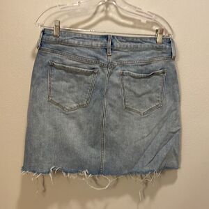 Old Navy blue jeans denim skirt. It’s super cute and in good condition. There is no size tag.