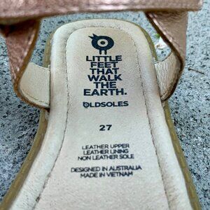 These Old Soles rose gold wing sandals are perfect for your little girl. They feature beautiful wing details and are made with high-quality leather. There are some small scuffs and marks on the footbeds, but in general they’re in very good pre-loved shape. Size 27 which is about a size 10.