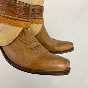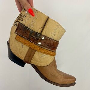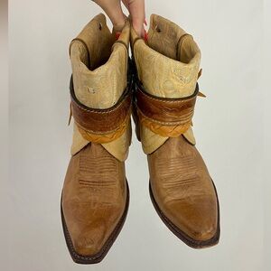 OLD WEST HAND EMBROIDERED BELTED LEATHER FOLDOVER COWGIRL BOOTS