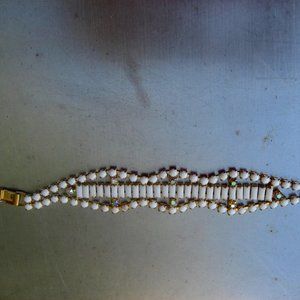 OLD WHITE GLASS & BOREALIS RHINESTONE BRACELET