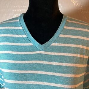 Old Navy women’s striped V-neck T-shirt Color:Aqua and white