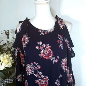 OLD NAVY COLD SHOULDER NAVY FLORAL DRESS SZ.S EUC