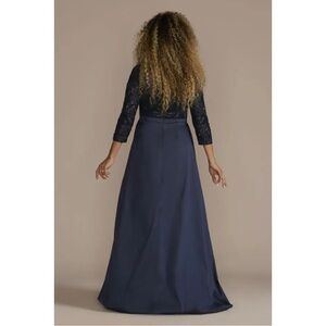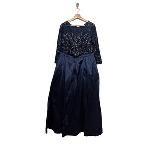 OLEG CASSINI Three Quarter Sleeve Beaded Lace Ball Gown Navy 16W