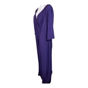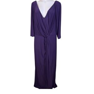 OLEG CASSINI Three-Quarter Sleeve Wrap Front Sheath Gown Size 22W Color:eggplant