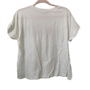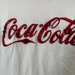 White classic tee with coca cola logo. Sequined details on logo. Boxy, loose fit. Rolled up short sleeves. 22" pit to pit. No size tag but would fit a medium!
