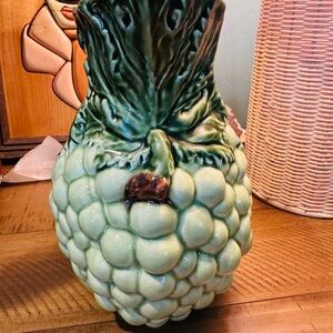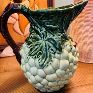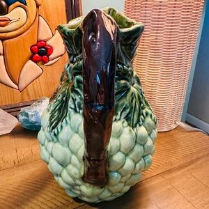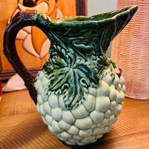 Add a touch of vintage charm to your home with this beautifully crafted grape ceramic pitcher. Featuring a rich green and brown design, it's perfect for both decorative and functional use.