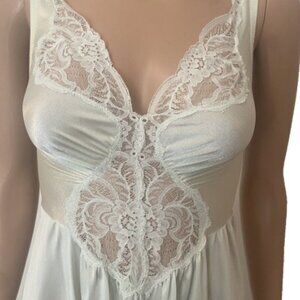 OLGA Pale Green Vintage 92150 Silky Nylon Nightgown Lace Bodice Small Excellent