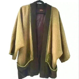 OLGA FISCH FOLKLORE ECUADOR BURLAP WOOL EMBROIDERED OVERSIZED KIMONO JACKET
