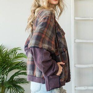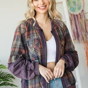 OLI & HALI BLUE PLAID MIX MEDIA ZIP JACKET