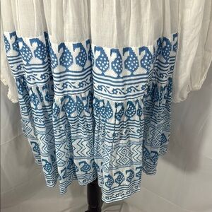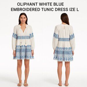 OLIPHANT WHITE BLUE EMBROIDERED TUNIC DRESS SIZE L