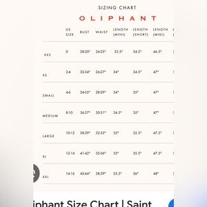 XS (0–2): Bust 32–33" / Waist 25–26" / Hip 35–36"