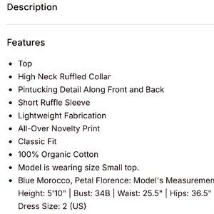 Blue Morocco, Petal Florence: Model's Measurements: Height: 5'10" | Bust: 34B | Waist: 25.5" | Hips: 36.5" | Dress Size: 2 (US)