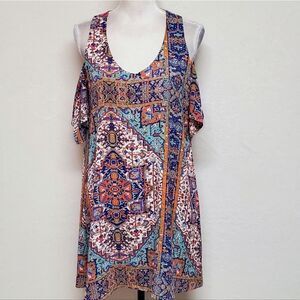 OLIVACEOUS Aztec Print Cold Shoulder V-neck Shift Dress Medium