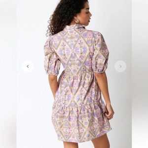 Such a gorgeous 100% cotton Olivaceous dress in beautiful lavenders and pinks! Floral multi print and love the collar and buttons! Lined at the skirt.