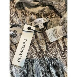 OLIVACEOUS MINI DRESS SMOCKED GRAY SNAKESKIN PRINT SZ L RUFFLE RUCHED AESTHETIC