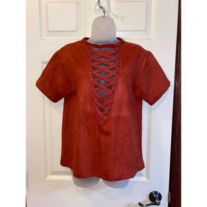 OLIVACEOUS Suede Lace Up Shirt Size Medium