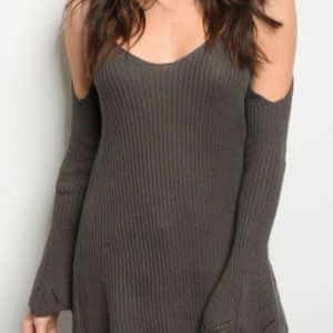 OLIVE GREEN RIBBED COLD SHOULDER BOHO SWEATER TOP