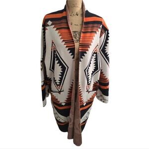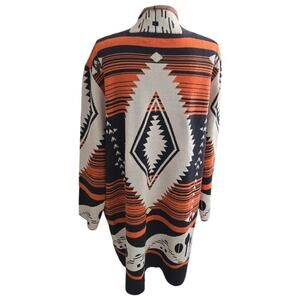 OLIVER O Orange Aztec Medium Weight Sweater Cardigan Duster Plus Size 3X New