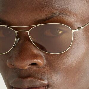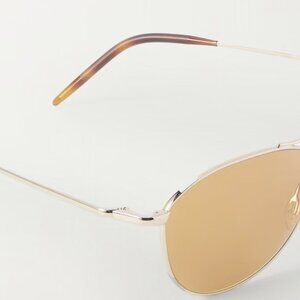 Oliver Peoples has graced many a famous face – its shades have been worn by icons like Al Pacino, Brad Pitt and Denzel Washington. Introduced in 1997, these 'Aero II' sunglasses have been made in Italy from gold-tone metal with slim, aviator-style frames and a curved double bridge. The tortoiseshell temple tips add to their retro look and feel.