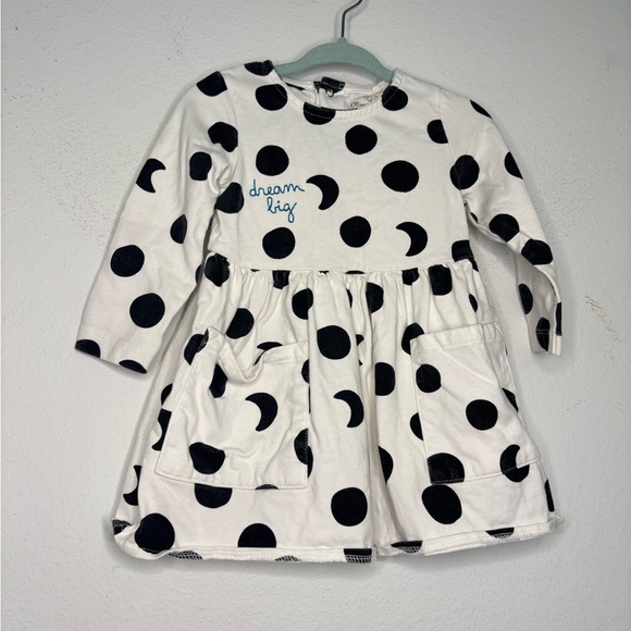 OLIVER & RAIN BLACK & WHITE POLKA DOT DREAM BIG BABY GIRLS DRESS SZ 12 MONTHS