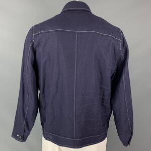 OLIVER SPENCER Size 44 Blue Contrast Stitch Linen Zip Jacket