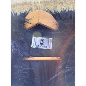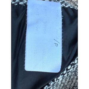 A chic OLIVER (Valentino diffusion line) belted long coat in a black and white herringbone tweed. This sophisticated outerwear piece features a luxurious black faux fur collar and a matching belt to cinch the waist, creating an elegant silhouette. The coat offers timeless style perfect for a sophisticated evening out or a polished daytime look.