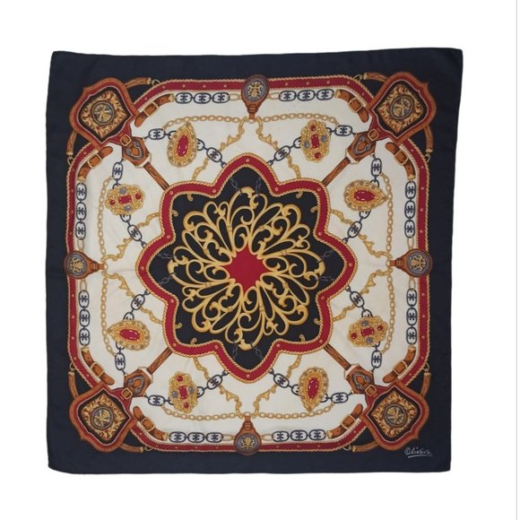 OLIVERA Blue Royal Silk Scarf 34.5"/ 34” EC