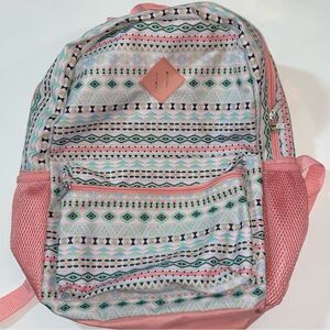 This stylish kids backpack features a playful pink and white pattern, perfect for school or outings. Durable and comfortable for everyday.