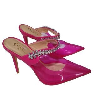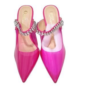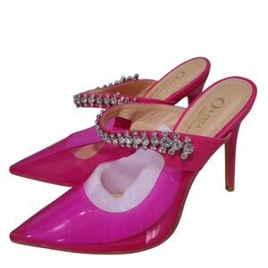 OLIVIA FERGUSON Rhinestone Mules Sandals Clear Stiletto Heels, Size 7.5