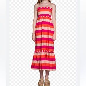 OLIVIA JAMES THE LABEL JANE DRESS PINK STRIPE STRAPLESS MAXI DRESS XS