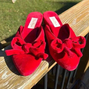 OLIVIA MORRIS AT HOME Red Velvet Daphne Bow Slippers size 38/8