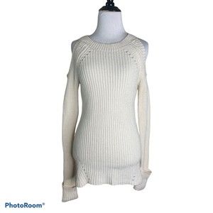 OLIVIA PALERMO CHELSEA28 Ribbed Cold Shoulder Pullover Sweater Ivory XXS XxSmall
