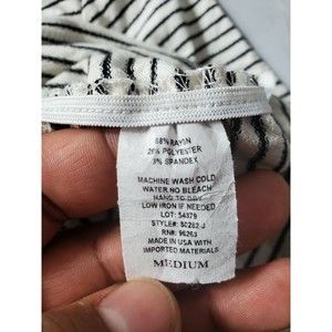 OLIVIA RAE Top Size Medium Striped White Black Scoop Neck Rouched Rayon