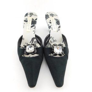 OLIVIA ROSE TAL Crystal Accent Black Suede Slide Mules 8