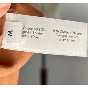 In a modern take on Aurora's ethereal style, a shell pink silk lurex fabric shimmers on this Aureta dress creating an otherworldly mood. This Olivia Von Halle x Disney dress features long sleeves and a mid length. Size: Medium Color: Metallic Coral Pink Long sleeves with button cuffs Round neckline Back keyhole slit with closure Midi Silk and metallic blend