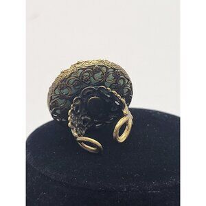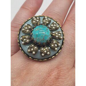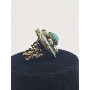 OLLIPOP USA Faux Turquoise Pearl Round Brass Ring Ornate Scroll Floral