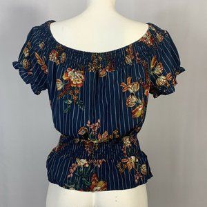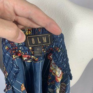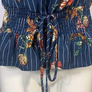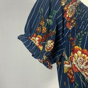 OLM Blue Floral Striped Blouse Medium