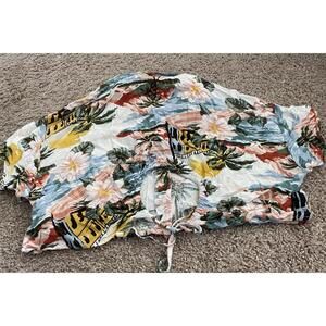 Step into summer with this vibrant O.L.M. floral print crop top, designed for comfort and style. This lightweight shirt features beautiful tropical motifs with a button-up front and a drawstring detail for a personalized fit. Perfect for layering or wearing solo, it's a fabulous addition to your casual wardrobe. Ideal for beach days, picnics, or casual outings, this unique piece is sure to turn heads!