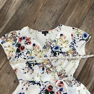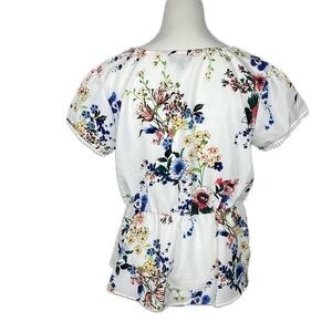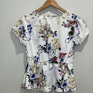 OLM Peplum Faux Wrap Multicolored Floral Print Top Size L Cottagecore Feminine