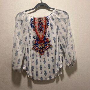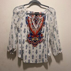 OLM Women's Peasant BOHO Gypsy Blouse Size Large Colorful