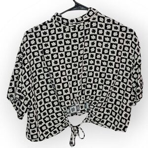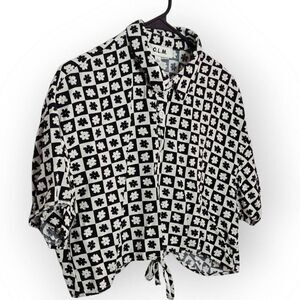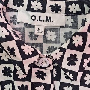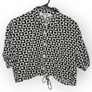 OLM Women's Checkered Floral Button Down Cropped Blouse size Large