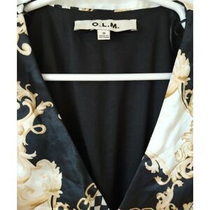 O.L.M. black white gold chess long sleeve Blouse top with bow S