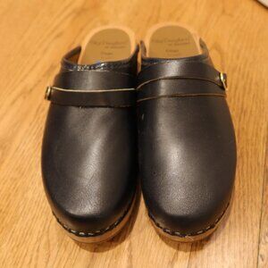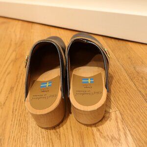 OLOF Daughters of SWEDEN CLOGS wooden heel authentic 38 leather buckle classic