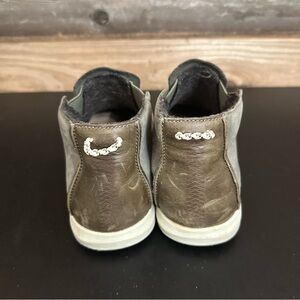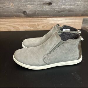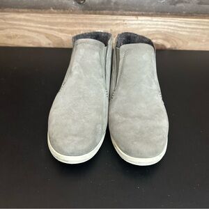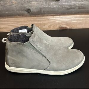 These ladies gray Olukai pull on boots are a size 10 and are in good preowned condition. Please see last couple of pictures to show imperfections on top of left shoe from briars. These are cosmetic and have not pierced the entire shoe to make a hole. Please see photos as they are part of the description and show the wear and condition of the boots. Questions? Leave a comment below!