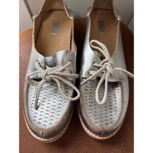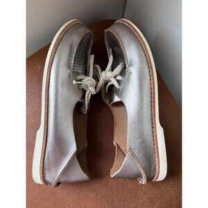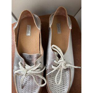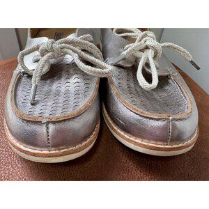 OLUKAI MOKU PERF LEATHER LOAFER SILVER FLATS SLIP ON SHOES LACE UP SIZE 8