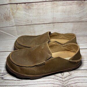 OLUKAI Moloa Men's Size 9.5 Leather Brown Slip On Shoes 10128-2733 Drop Heel