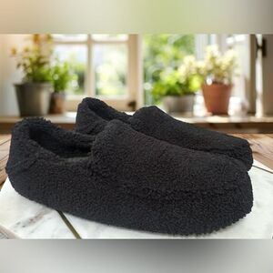 OLUKAI Nohea Heu Black Shearling Slip On Loafer Slipper Flats Size 9 EU 39