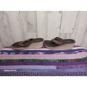 OLUKAI ~ Women's “Melia” Brown Leather Wedge Platform Flip Flop Sandals Size 8